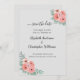 Rosa och vit blommigt i elegant på en lätt grått-bakgrund. Baksidan har samma blomstermotiv med utrymme för att lägga till namn, datum för bröllop och webbplats om du vill.