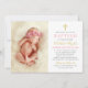 Elegant Rosa och Guld Bebis Flickas Foto Dop Inbjudningar