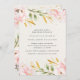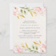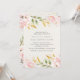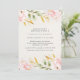 Elegant och modern blommigt inbjudningskort för möhippan har blommor med vattenfärg i mjuka nyanser av rosa och guld, med lush grönt botaniska löv. Anpassa med din möhippa i elegantens svarta bokstäver.