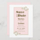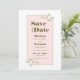 Berätta för dina vänner och nära och kära om era framtida bröllop-planer med elegantens rosa och guld-spara-till-datum-kort.