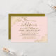 Detta vackra inbjudningskort för möhippan är både enkelt och elegant. Den har guld-text på en lätt rosa med lacy guld faux foil frills eller filigree i hörnen. Den har information både om duschen och om OSA och register. Perfektens sätt att fira bruden att vara i stil!