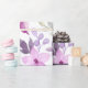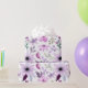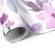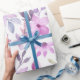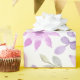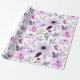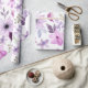 Vattenfärg mönster av rosa och lila blommor med gröna blad på en vit bakgrund. Den blomsterdesignen är delikat och charmig och skapar en mjuk, konstnärlig känsla.