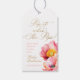 Elegantens rosa- och persikodusch-dusch "pop it when her pops"-taggar har blommigt vattenfärgsbilder och faux guld-bokstäver och är anpassade med dina egna detaljer.