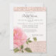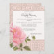 "Elegant Rosa Peony Blommigt w Greenery Inbjudningskort för möhippan." En mjuk, pastellbaserad rosa med grått- och krämfärgade rullstaket i järn tillför en ny, modern inbjudningskort för möhippan en historisk vintage elegans. Tillverkad av en originalmålning av en internationellt licensierad konstnär, Audrey Jeanne Roberts, upphovsrätt.
