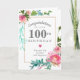 Grattis en mycket speciell person på deras 100-årsdag med en rosa peonyblomsterdesign. Elegant och chic - peonerna med känsliga gröna och turkosa botaniska element dekorerar en tunn guldram. All text kan redigeras, så att du kan anpassa ett mycket personligt och meningsfullt meddelande.