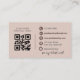 Ett modernt, feminininskt affärskort med elegant-skripttypografi, snyggtens bakgrund för rosa och en skannerbar QR-kod för enkel åtkomst till din portfölj eller bokningsinformation. Perfekt för konstnärer, skönhetsiga professioneller och alla som vill ha en mjuk än professionell märkesnärvaro.