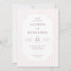 Denna eleganta bröllopsinbjudan har en klassisk design med vertikala rosa ränder och en central utsmyckad ram, vilket skapar ett balanserat och sofistikerat utseende. Den mjuka rosa och vita färgpaletten förstärker stämningen av romantik, medan den serifbetonade typografin tillför en touch av tidlös elegans. Dekorativa element som de skålformade kanterna bidrar till dess vintage-karaktär, vilket gör den perfekt för par som söker en traditionell men ändå raffinerad estetik för sin speciella dag.