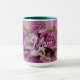 Anpassa den här Eleganten "Ett av ett slag" Rosa ros Bouquet Mugg! Den har en Elegant Rosa och Lila Bukett med rosor med Light and Mörk Rosa ros omgivande White och Lila blommor. Original Art Design by Artist Kerry Miller.