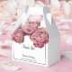 Den här designen har en elegant av rosa ros. Rosa ros kompletteras av en elegant svart klädd gräns. De rosa tonerna på blommorna i ro skapar en elegant av rustik blommigt i land. Utformning av en förmånslåda i elegant bröllop med modernt inslag. Det finns också möjlighet att matcha bröllopsinbjudningar och andra artiklar i kontorsartiklar.