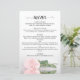 Dessa vackra bröllop-menyer är enkla, eleganter och snyggtar, samtidigt som de fortfarande är budgetvänliga och prisvärda. De har en klassmässig och glamorös utformning med en manusjografisk titel och en enda rosa färgad ro som reflekterar i ett bassäng av vatten med vinkara och krämer. Baksidan är ett vackert, marmorerat blek pastel rosa färg med parets namn och bröllop datum vid grund.
