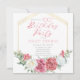 Elegant och klassy rosa och vit ros blommigt med sage grönt gienery "Födelsedagsfest"-skriptutformning med geometrisk guld-tonad linjer ram.