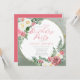 Elegant och klassy rosa och vit ros blommigt med sage grönt grön "Födelsedagsfest"-skriptutformning med geometrisk guld-tonad linjer cirkelformad ram.
