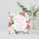 Elegant och klassvis rosa och vit ros blommigt med sage grönt eucalyptus grey "Födelsedagsfest"-skripttextdesign med geometrisk guld-tonad linjer-cirkulär ram.