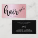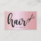 Modern affärskort för hårfrisörer eller hårstylist med saxar, faux rosa ros guld bakgrund och elegant calligraphy font.