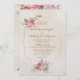 Vackra rosa ros tog den här elegantens inbjudan med elfenbensbakgrund och guld ram. Baksidan är lika vacker, med mer rosa ros. OSA kort: