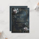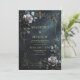 Denna design blandar naturens känsliga skönhet med en sofistikerad och stämningsfull atmosfär. Mot en djup, texturerad kolbakgrund blommar två realistiska blekrosa rosor i motsatta hörn, åtföljda av skimrande metalliska silverblad och smala, graciösa stjälkar. En tunn, utsmyckad rektangulär ram i en mörk bronsfinish har invecklad scrollwork och elegant filigran, vilket ger en majestätisk och strukturerad fokuspunkt för dina detaljer. Kontrasten mellan de mjuka blommiga tonerna och den mörka, texturerade bakgrunden skapar en känsla av tidlös romantik och kunglig mystik. Som bröllopsinbjudan är detta ett utsökt val för en formell kvällsceremoni, ett romantiskt vinterbröllop eller en gotiskt tema-gala. Det ger ett unikt och polerat första intryck, som lovar gä