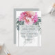 Här är ett modernt val av elegant för inbjudningarna till er kommande ceremoni i bröllop. Den här designen har en blommigt bukett i nyanser av , rosa och persika tillsammans med eukalyptus bladage i en rad olika gröntar. Över eukalyptus finns dina uppgifter om anpassadet bröllop på en halvgenomskinlig bakgrund med faux silver folie. Kortets baksida är en mjuk grått-grönt som är tillgänglig för användan för foton eller ytterligare information. Om du har en designfråga eller vill se den här designen på en annan produkt kan du kontakta mig på jschmidtdesignworks@gmail.com. Design © Judith Schmidt.
