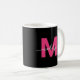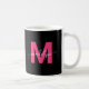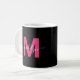 Personlig Modern Elegant Rosa och svart Namn Initial Monogram-kaffe Mugg. Den här chicen ger det feminina mugg en snyggt, en personlig beröring till varje kaffe eller te älskare. Monogrammet visas på båda sidor med ett fet magenta-rosa över en slimmad svart bakgrund med ett känsligt vitt skript namn och lägger till ett utfall, personlig-utseende från varje vinkel. Den här mugg är skapad med en modern minimalistisk syn och ger en tankeväckande gåva till födelsedagar, hemmabruk, helgdagar, eller bara för att. Det är också ett val för perfekten för möhippor, möhippor eller bröllopsdag, blandning av klassisk sofistikering med trendig, giftig charm.