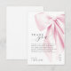 Uttryck din tacksamhet med stil med detta eleganta rosa slinga tackkort. Designat med romantisk handskriven stil, ett mjukt rosa sidenband och en tidlös coquette-estetik, är detta kort det perfekta sättet att tacka dina gäster för att de firade din speciella dag.