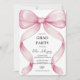 Fira din examenstågångare med stil med denna eleganta rosa examensfestinbjudan med rosett. Med en mjuk akvarellbanddesign i pastellrosa och modern typografi är denna inbjudan perfekt för att hedra din stiliga examenstågångare. Fullt anpassningsbar med examenstågångarens namn, skola, festdatum, plats och kontaktuppgifter. Perfekt för tjejer som tar examen i klassen 2025 och älskar en feminin och klassisk touch. Tryckt på högkvalitativt papper lägger denna inbjudan till en personlig touch på din examensfirande.