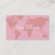 Ett affärskort för ett resande agent, eller vilket annat yrke som helst... med bilden av rosa karta i världen med namn (elegant handskrivet teckensnitt stil). I resebranschen spelar första intryck en roll - och det lämnar också en varaktig intryck. Ett väl designat affärskort är ett enkelt men mäktigt marknadsföring verktyg för reseguiden agent och reseguiderna. Trots den digitala tidsåldern är affärskorten fortfarande ett konkret och personligt sätt att få kontaktinformation, främja tjänster och bygga varumärkesigenkänning. När det gäller resande agent stärker ett affärskort som lämnas till en potentiell kund, hotellrepresentant eller nätverkspartner professionalismen och trovärdigheten. Det ger snabb tillgång till viktiga kontaktuppgifter och fungerar som en påminnelse om ett personligt samspel, vilket är nödvändigt i en relationsdriven bransch. När det gäller reseguider, särskilt de som arbetar på resmål med tung fottrafik, kan ett affärskort lätt förvandla ett engångsmöte till framtida affärsverksamhet. Resenärer kan vilja rekommendera en underbar guide till vänner eller kontakta dem för en andra resa - och ett kort gör det enkelt.