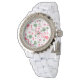 Elegant rosa vattenfärgstropiska flamingo-blommigt armbandsur