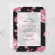 Den här designen har elegant rosa ros. Med svart bakgrund i kombination med blommor från den rosa vintagen. Ogenomskinlig vit lagrar, vit gräns och enkel text skapar ett sofistikerat klassutseende. Eleganten arrangerade blommigtens layout på ena sidan och den svarta motstående sidan som visade namn och en enda ro kombinerar bridens och rummens för att sammanföra en verkligt unik utformning. Den här utformningen passar perfekt för alla bröllop-teman. Perfektens utformning för alla säsonger. Det finns även alternativ för matchning av bröllop-kontorsartiklar och andra bröllopsinbjudningsformat.
