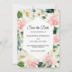 Sätt tonen för din speciella dag med detta eleganta akvarell "Save the Date"-kort, med mjuka rosa och vita blommor, frodig grönska och en ren modern layout. Den romantiska blomsterramen framhäver era namn och bröllopsdatum vackert. Perfekt för vår-, trädgårds- eller traditionella bröllop. Anpassa enkelt med era evenemangsuppgifter för ett hjärtligt meddelande som era gäster kommer att värna om.