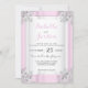 Elegant Rosa & vit satatin med Silver Ornate Inbjudningar