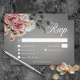 Oöverträffad elegans med det här krävande svarskortet för bröllop med middagsval. Den realistiska toppen av blommigten gräns, med mjuk och vit ros, peonier och ömtåliga blommor, skapar en romantisk och sofistikerad atmosfär. Bakgrunden för grått, som framhävs med en mjuk vit, transparent oskärpa, tillför en liten skönhet i ögat. Den vita eleganten, som ramas in av blommigten gräns, kompletterar den klassiska och tidslösa designen. Detta är perfekten för ett par som vill ha ett sofistikerat och oförglömligt bröllop firande. Skapat av Farmhouse Press.