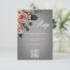Oöverträffad elegans med det här krävande svarskortet för bröllop med QR-kod. Den realistiska toppen av blommigten gräns, med mjuk och vit ros, peonier och ömtåliga blommor, skapar en romantisk och sofistikerad atmosfär. Bakgrunden för grått, som framhävs med en mjuk vit, transparent oskärpa, tillför en liten skönhet i ögat. Den vita eleganten, som ramas in av blommigten gräns, kompletterar den klassiska och tidslösa designen. Detta är perfekten för ett par som vill ha ett sofistikerat och oförglömligt bröllop firande. Skapat av Farmhouse Press.