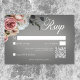 Oöverträffad elegans med det här krävande svarskortet för bröllop med middagsval. Den realistiska toppen av blommigten gräns, med mjuk och vit ros, peonier och ömtåliga blommor, skapar en romantisk och sofistikerad atmosfär. Bakgrunden för grått, som framhävs med en mjuk vit, transparent oskärpa, tillför en liten skönhet i ögat. Den vita eleganten, som ramas in av blommigten gräns, kompletterar den klassiska och tidslösa designen. Detta är perfekten för ett par som vill ha ett sofistikerat och oförglömligt bröllop firande. Skapat av Farmhouse Press.