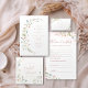 Elegant delikat vattenfärgsutandning för vilda blommor ramar din händelseinformation. Pastellpaletter av mjuk rosa, benvit, beige, dammblått och botaniskt grönt, enkelt och romantiskt. Underbar blommigt inbjudningskort för möhippa för det moderna ryska party, boho land trädgård party i vår och sommar. Visa alla matchande delar i samlingen.