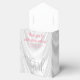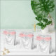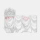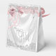 Rosablommiga baby shower presentlådor med elegant vit satin och vackra pärlor och diamantrosa band på vit satin bakgrund. Du kan lägga till den text du väljer, eller så kan du ta bort all text.