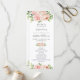 Designad för att samordna med vår Bloomsbury bröllopssamling, har detta eleganta bröllopsprogram en vacker akvarell rosabruden bukett och handskriven text. Anpassa det med dina bröllopsdetaljer enkelt och snabbt, tryck bara på knappen anpassa för att ytterligare ändra och formatera stil och placering av texten. Dubbelsidig. (c) The Happy Cat Studio