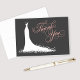 Eleganta brudkorts- eller bröllop "Tack"-kort för den stilfulla blivande bruden har en utsmyckad kalligrafisk font och flödande brudklänning. Rullande blom- och fjärilsdetaljer accentuerar den eteriska klänningen. Det vikta kortformatet innehåller utrymme på insidan för ett handskrivet meddelande. Designfärgerna inkluderar färgerna vit, rosakorall rosa och kol svart.