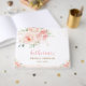 Anpassa den här snygga bröllopsduschgästboken enkelt och snabbt genom att trycka på knappen Redigera med designverktyg för att ytterligare ändra och formatera stil och placering av texten. Den här eleganta gästboken har vackra akvarell rosabruna rosor och delikat grön och guldfoliage. Utforska matchande artiklar som finns i butiken för att skapa en sammanhängande och stilren fest! (c) The Happy Cat Studio.