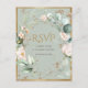Elegant rosafärgad blommig guldgrön bröllopsdekor vykort