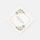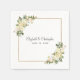 Elegant chic botanisk bröllopsservett med romantiska vita vaniljbröllopsrosor med inslag av rosaton visas i lummig grönska på en tidlös vit bakgrund. En trendig gyllene fyrkantig ram ger en gnistrande touch. Personifiera bröllopsdetaljer med era namn och bröllopsdatum i elegant kolgrå bokstav och skrivstil. Blir en perfekt tillägg till er bröllopsfest!