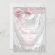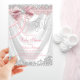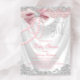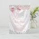 Blushrosa baby shower-inbjudan med elegant vit satin och vackra pärlor och diamantrosa band på vit satinbakgrund. Denna vackra rosa och silverfärgade baby shower-inbjudan kan enkelt anpassas för ditt evenemang genom att helt enkelt lägga till dina evenemangsuppgifter i den typsnittsstil och färg och formulering du väljer.