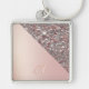 Elegant Rose Gold Monogram Button Fyrkantig Silverfärgad Nyckelring