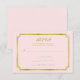 Dessa stilrena bröllops-RSVP-kort har en elegant falsk guldram och en chic rosé bakgrund.
