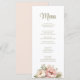 Elegant rosé- och persikafärgad blomsterbröllopsme meny