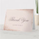 En elegant tacksamhetskort för bröllopsfest med glänsande roséguld foliehörn och en blek rosa bakgrund.