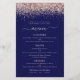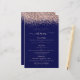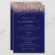 Elegant roséguld glitter marinblå bröllopsmeny Bud