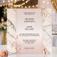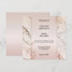 Bröllopsinbjudan med en rosafärgad design med roséguld blommotiv i virvlar på en stilren marmorerad bakgrund med lätta gnistrande detaljer. Denna inbjudan har ett matchande svarsbrev.