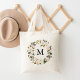 Uppgradera din tote-spel med våra stilrena personliga tote-påsar med vattenfärgade magnolior. Den eleganta tote-påsen har din anpassade monogram eller initial omgiven av en krans av vita magnolior och rosenskiftande rosa vattenfärgade blommor kompletterade med bruna och gröna blad. De blomsterkransade tote-påsarna är perfekta för bruden-till, brudtärna, brudens mor, baby shower, etc.