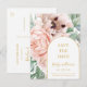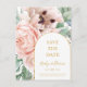 Denna eleganta rosa blomsterträdgårdsräddningsdatum-postkort är perfekt för din boho, rosa vår botaniska bröllop. Designen har en guldpräglad ram åtföljd av en enkel akvarell-persikofärgad champagnejdröja, minimalistisk grön eukalyptusgrönska och en modern unik neutral, korallfärgad vallmo vildblomma. Designen är en lyx, idealisk för ett klassiskt, elegant, delikat chic-sommar-, höst- eller vinterbröllop. Vänligen kontakta oss om du har några frågor om produktens design; skål!