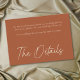 Fira din kärlek med denna minimalistiska rost terrakotta lilla bröllopsdetaljer inklusionskort design. Med en elegant, enkel design är den perfekt för en elegant höstceremoni. Denna jordnära, moderna look ger en varm och sofistikerad känsla för ditt bröllop. Skapad av Simply Farmhouse Press.