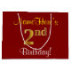 Den här enkla presentsäcksdesignen i eleganten innehåller ett personlig som "Namehere's 2nd Birthday!" (med "2nd" med ett utseende som liknar guld i utseende av faux/imitation) på en röd färgad. Namn är i skriptliknande gult-färgad och kan anpassas. En sådan här personlig-födelsedagspressning skulle kanske kunna användas när en present eller gåva till någon som firar sin andra födelsedag är ge. [~Z0000253]